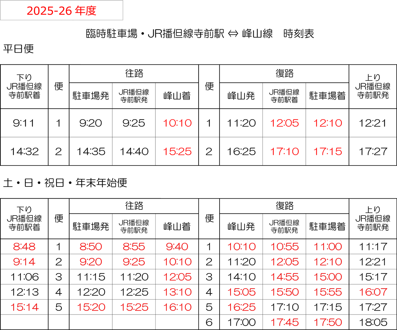 *12月29日~1月3日の間は土日祝の時刻表で運行します。